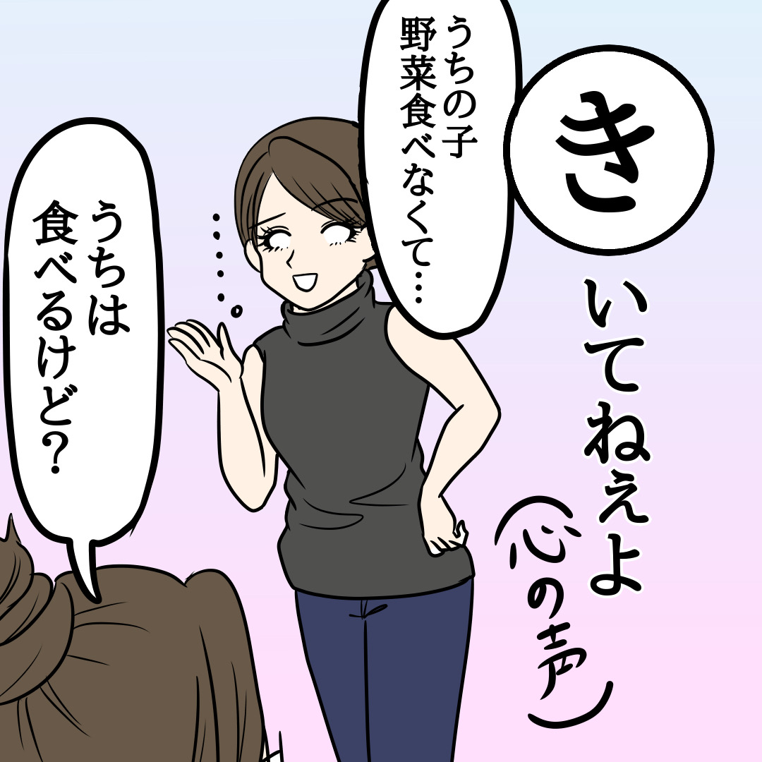 「うちの子野菜食べなくて」に対して「うちの子は食べるけど」ってなんの返答?