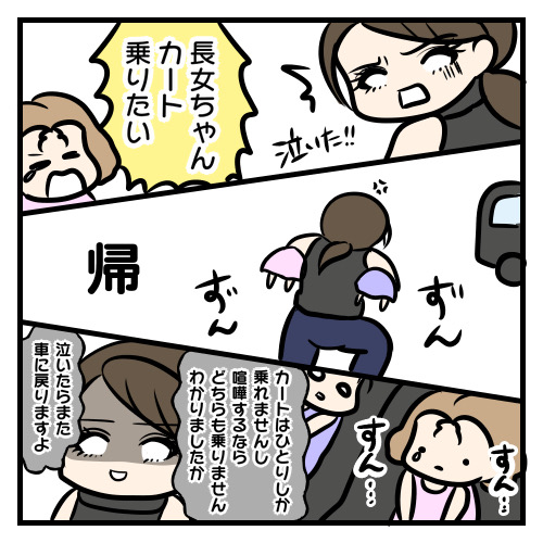 退屈な車の中に戻って泣き止むまで行かない…というのを繰り返しました。