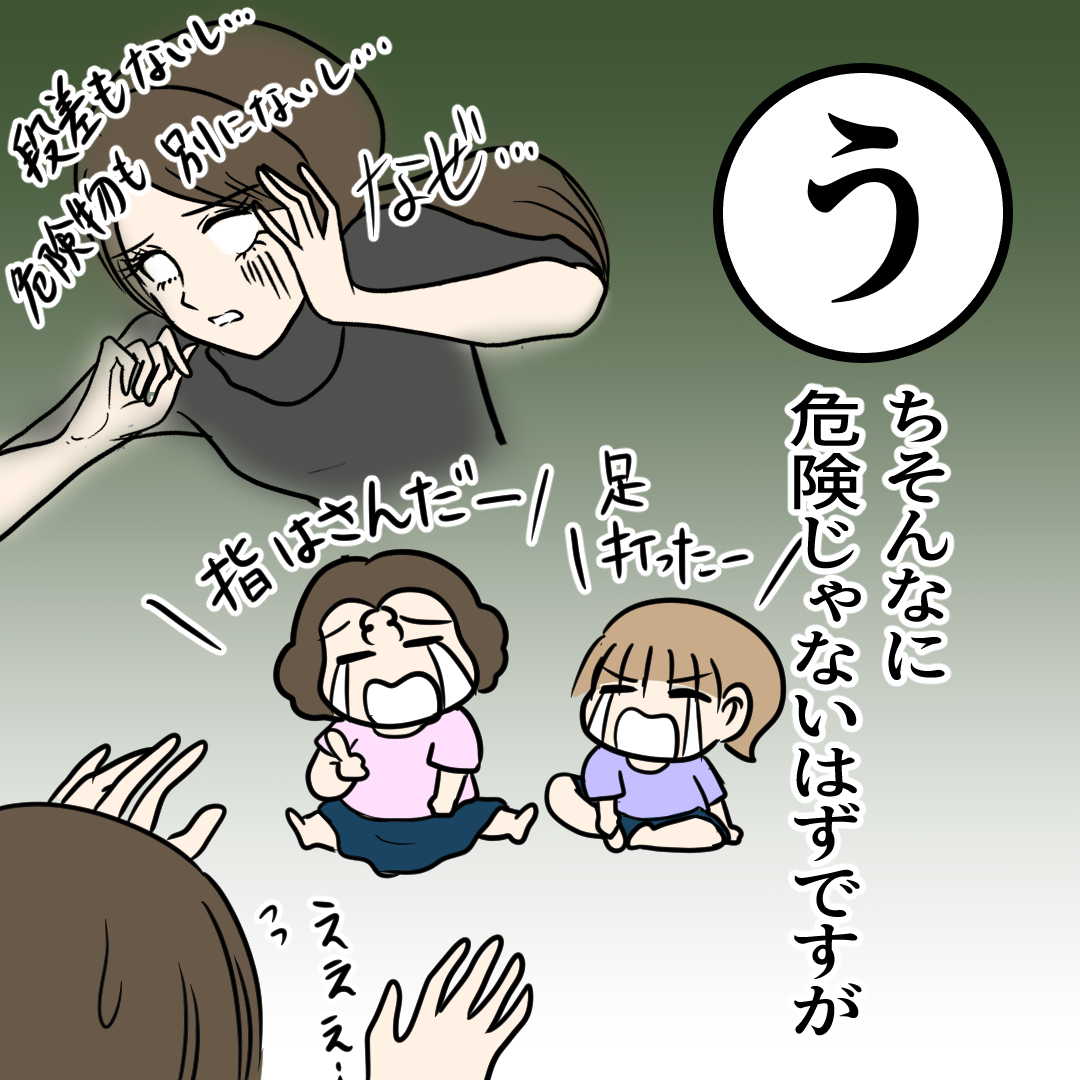 寝室に向かおうとくるっと振り返った次女がドアに頭をぶつけ。