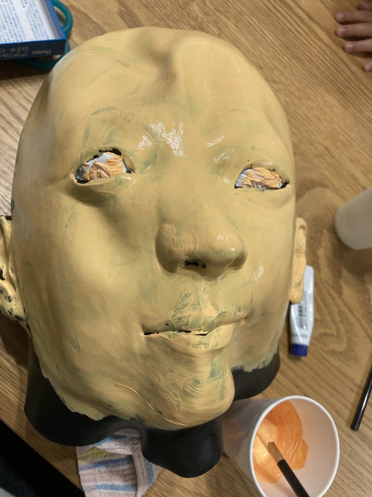 手順2:黄色+大量の白+少量の赤で肌色を作って塗る