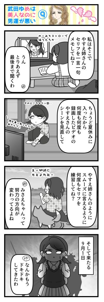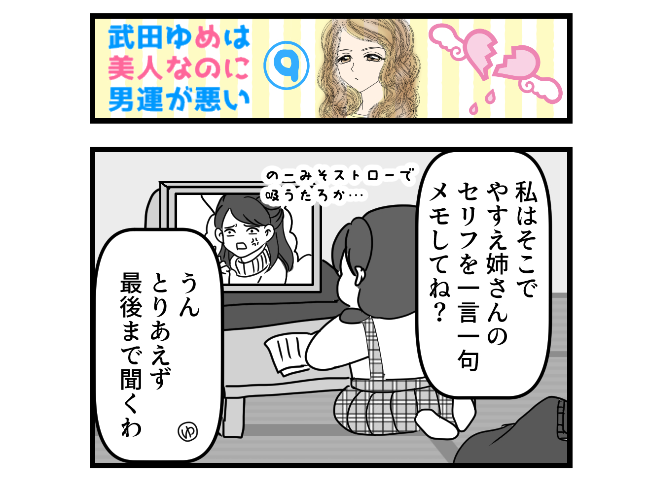 スポンサーリンク おすすめ記事ボスママBさん【1】武田ゆめは美人なのに男運が悪い1猫いると毎日がミステリー①「白目家の3ネコ」すくパラぷらすー心理士連載ー白目むきながら心理カウンセラーが泣いた日ーアフター... 武田ゆめは美人なのに男運が悪い9 🐱【四コマ】武田ゆめは美人なのに男運が悪い2022.12.202022.12.27スポンサーリンク いつもご覧いただきありがとうございますNEW!▼その他書籍も好評発売中広告 武田ゆめやのうてお前の話やないかい!というツッコミを脳内でされている方。別に伏線でもなんでもなく私が私の思い出描きたくてねじ込んでるだけです。すみません。もうすぐ白目編は終わりますので…。 contents広告 1