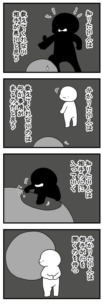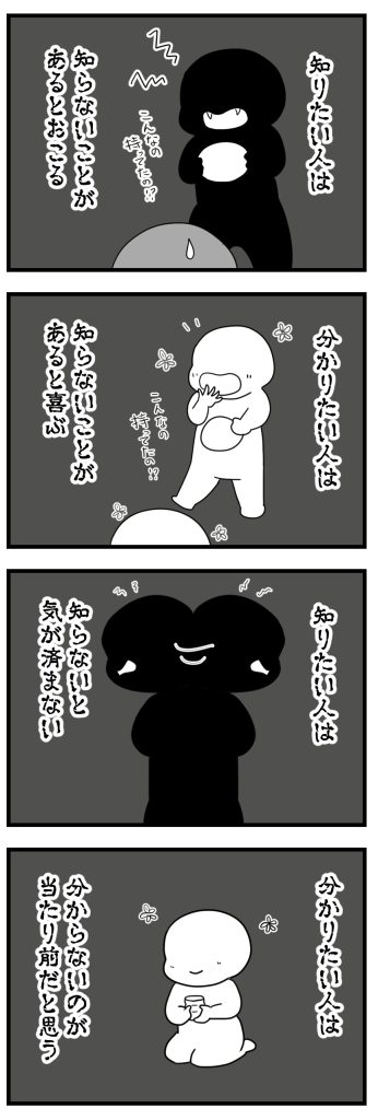 スポンサーリンク おすすめ記事ボスママBさん【1】武田ゆめは美人なのに男運が悪い1猫いると毎日がミステリー①「白目家の3ネコ」すくパラぷらすー心理士連載ー白目むきながら心理カウンセラーが泣いた日ーアフター... 知りたい人と分かりたい人② 🐱【四コマ】ブラック絵本シリーズ2023.02.182023.06.25スポンサーリンク いつもご覧いただきありがとうございますNEW!▼その他書籍も好評発売中広告 続きはこちら 知りたい人と分かりたい人③次のお話はこちら contents広告 1