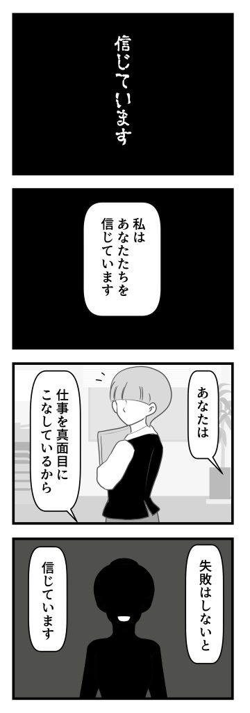 スポンサーリンク おすすめ記事ボスママBさん【1】武田ゆめは美人なのに男運が悪い1猫いると毎日がミステリー①「白目家の3ネコ」すくパラぷらすー心理士連載ー白目むきながら心理カウンセラーが泣いた日ーアフター... 信じています① 🐱【四コマ】ブラック絵本シリーズ2023.08.062023.08.07スポンサーリンク いつもご覧いただきありがとうございますNEW!▼その他書籍も好評発売中広告 続きはこちら 信じています②続きはこちら 他のブラック絵本シリーズはこちら他のブラック絵本シリーズはこちら とうえいさん① 辞めた理由①続きはこちらから 他のブラック絵本シリーズはこちらから contents広告 1