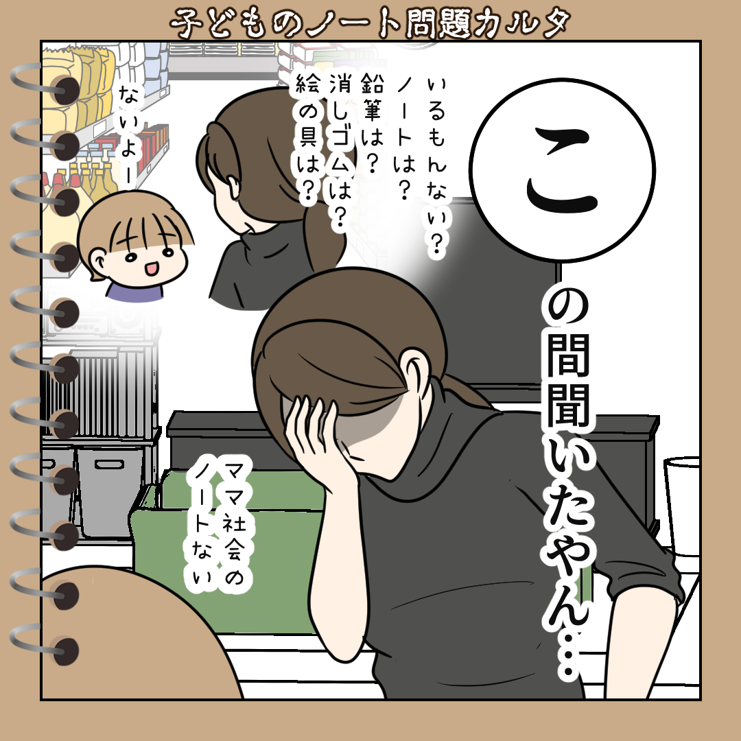 スポンサーリンク おすすめ記事ボスママBさん【1】武田ゆめは美人なのに男運が悪い1猫いると毎日がミステリー①「白目家の3ネコ」すくパラぷらすー心理士連載ー白目むきながら心理カウンセラーが泣いた日ーアフター... 【子どものノート問題カルタ③】文具屋さんも学校に購買もない ■【カルタ】白目カルタ2024.09.25スポンサーリンク いつもご覧いただきありがとうございますNEW!▼その他書籍も好評発売中広告 ◾️文具屋さんも学校に購買もない私の時代にはあったんですけど。田舎すぎだからですかね。近所の文具店は潰れました。 【子どものノート問題カルタ②】子どもだけでは買いに行けない◾️子どもだけでは買いに行けない ※田舎あるあるですが子どもが一人で買いに行ける距離にノートを売っているお店はありませんただし葬儀場は徒歩3分の距離にあります contents広告 1
