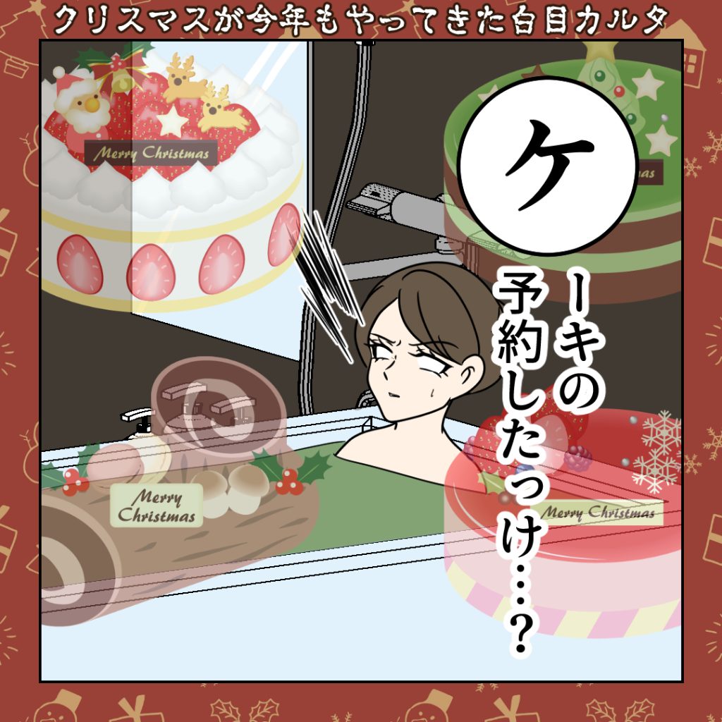 スポンサーリンク おすすめ記事ボスママBさん【1】武田ゆめは美人なのに男運が悪い1猫いると毎日がミステリー①「白目家の3ネコ」すくパラぷらすー心理士連載ー白目むきながら心理カウンセラーが泣いた日ーアフター... 【クリスマス2024】④ケーキの予約したっけ…? ■【カルタ】白目カルタ2024.12.27スポンサーリンク いつもご覧いただきありがとうございますNEW!▼その他書籍も好評発売中広告 ◼︎ケーキの予約したっけ…?お風呂入ってる時とかにふと思い出す選んだけど…予約もしたっけ…? contents広告 4